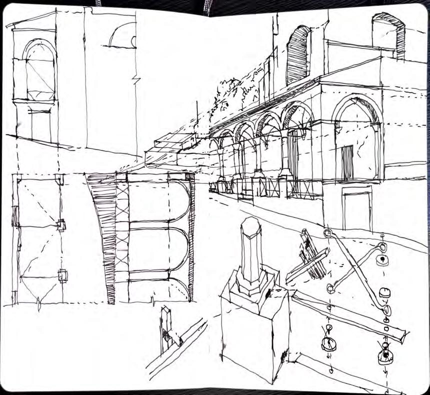 BACK IN SPRING OF 2023, I STUDIED ABROAD IN ITALY DURING WHICH I WOULD TRAVEL TO VARIOUS TOWNS ACROSS THE COUNTRY ONCE A WEEK FOR CLASS TOURS IN VARIOUS CITIES. PART OF THE TOUR INVOLVED VISITING VARIOUS LANDMARKS AND PERFORMING HAND SKETCHES OF THE BUILDING, FROM ELEVATIONS, 2D AND PERSPECTIVES, OR EXPLODED AXONS. THIS PRACTICE HELPED ME DEVELOP MY FREEHAND SKILLS, TEST MY ABILITIES TO DISSECT A BUILDING, AND CAPTURE ITS ESSENCE ON PAPER. THIS PORTFOLIO CONTAINS MY BEST WORK FROM THAT TIME PERIOD. I HOPE YOU ENJOY WITNESSING MY WORK AS MUCH AS I CHERISH THE MEMORIES OF THAT TRANSFORMATIVE TIME.