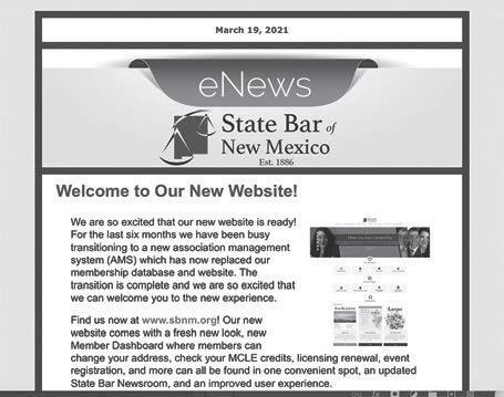 Get Your Business Noticed! Advertise in our email newsletter, delivered to your inbox every Friday. Contact Marcia Ulibarri, at 505-797-6058 or email marcia.ulibarri@sbnm.org Benefits: • Circulation of 8,000 • Affordable pricing