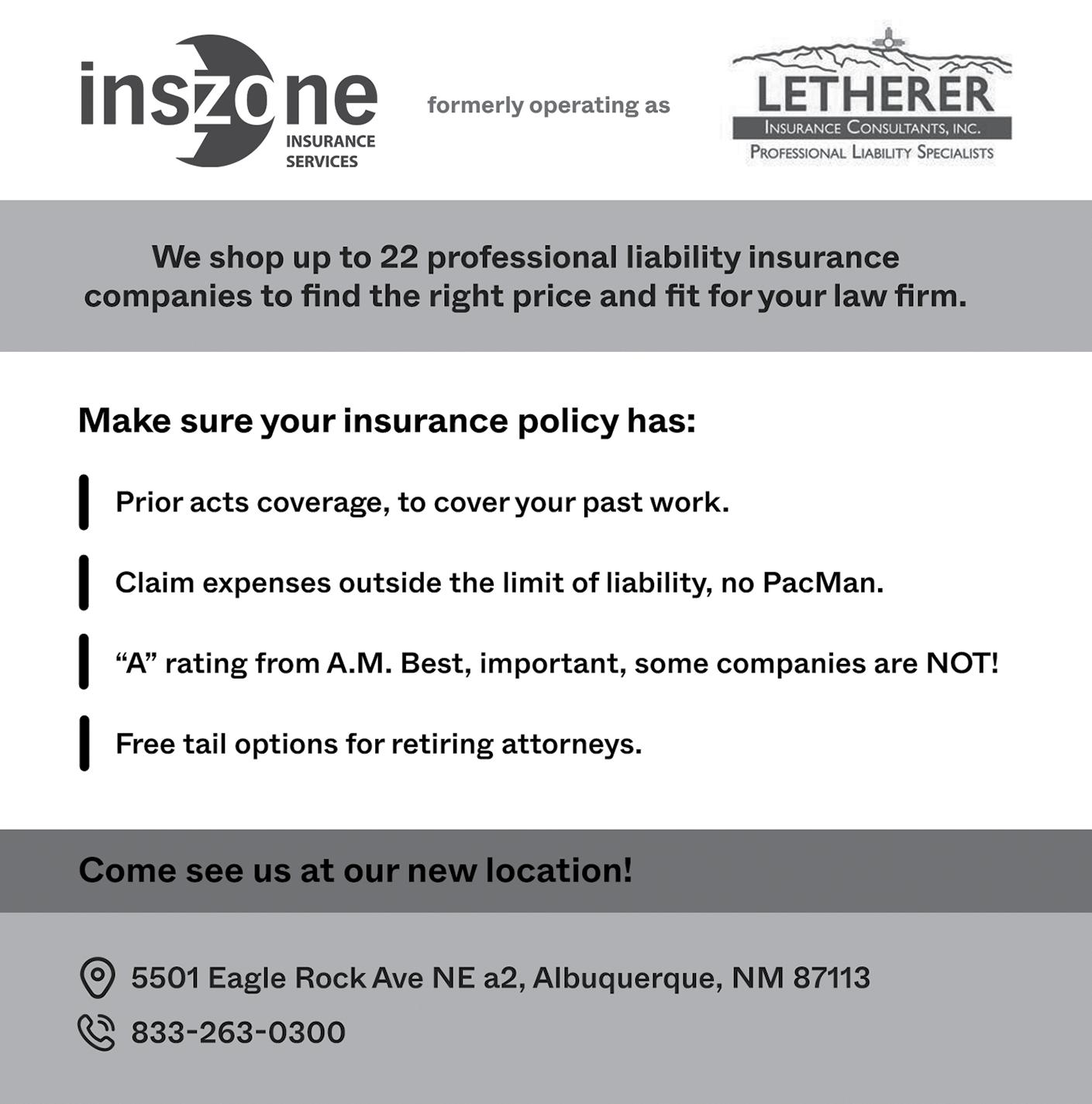 ©2024, State Bar of New Mexico. No part of this publication may be reprinted or otherwise reproduced without the publisher’s written permission. The Bar Bulletin has the authority to edit letters and materials submitted for publication. Publishing and editorial decisions are based on the quality of writing, the timeliness of the article, and the potential interest to readers. Appearance of an article, editorial, feature, column, advertisement or photograph in the Bar Bulletin does not constitute an endorsement by the Bar Bulletin or the State Bar of New Mexico. The views expressed are those of the authors, who are solely responsible for the accuracy of their citations and quotations. State Bar members receive the Bar Bulletin as part of their annual licensing fees. The Bar Bulletin is available at the subscription rate of $125 per year and is available online at www.sbnm.org.