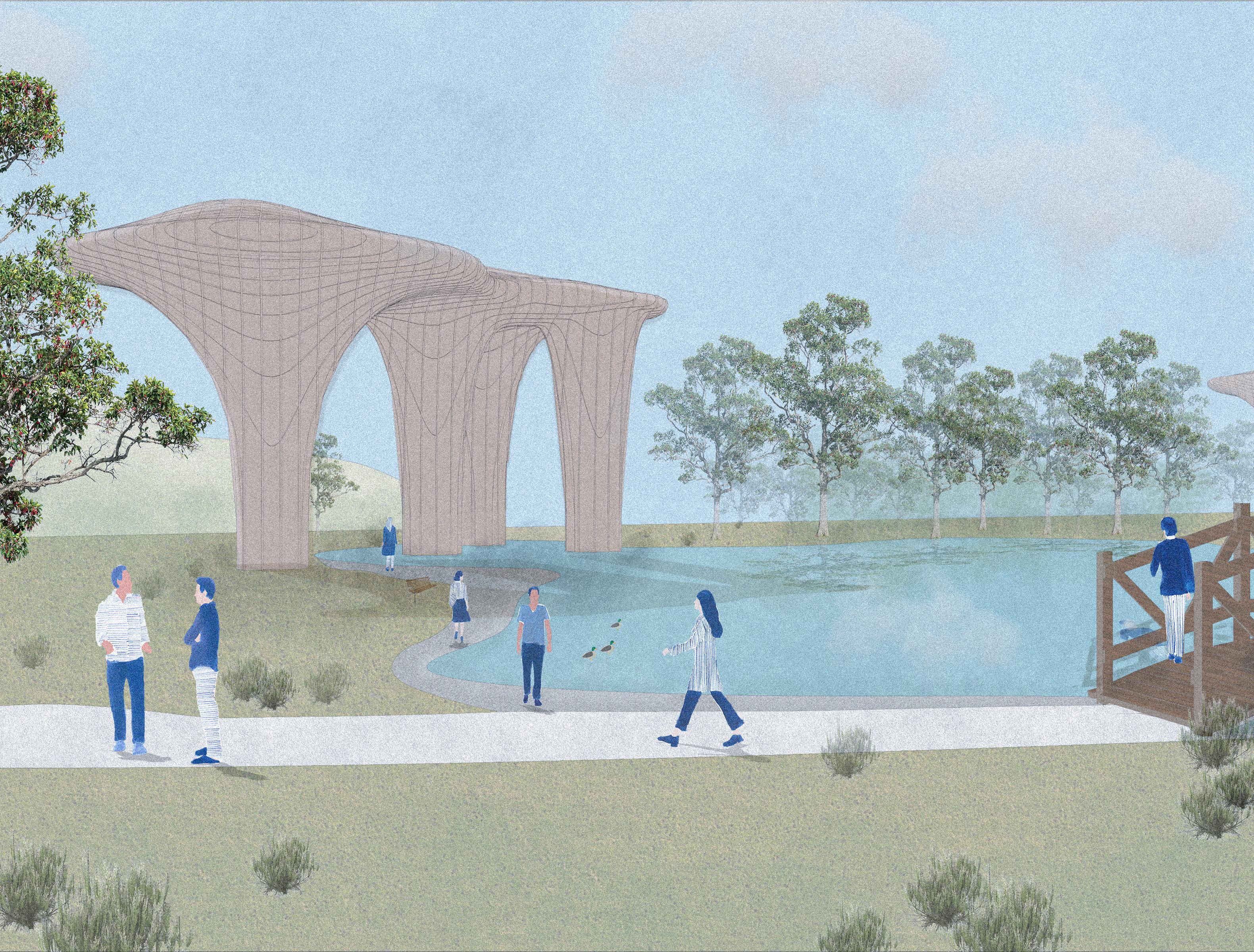 Also, by drawing inspiration from historically contemplative elements found in Japanese Gardens and memorials, the project succeeds in its goal to evoke contemplation on the effects of human ingenuity. Through the creation of specific design elements, the project creates an atmosphere conducive to reflection and introspection, encouraging visitors to ponder the complex relationship between human innovation and the natural world.