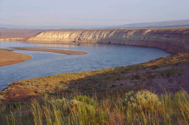 The natural environment at the White Bluffs area is characterized by a unique combination of arid desert landscapes, towering chalk-colored cliffs, and the riparian habitat of the Columbia River. This region experiences a semi-arid climate, with hot, dry summers and cool, wet winters, resulting in sparse vegetation dominated by shrub-steppe species adapted to drought conditions.