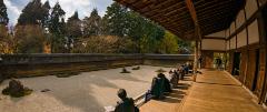 Measuring approximately 25 meters by 10 meters, the karesansui of Ryōan-ji is a masterpiece of simplicity, comprising 15 carefully placed rocks amidst raked gravel. Its composition remains a subject of intrigue and interpretation, with scholars and visitors alike pondering the symbolic significance of its arrangement. Some speculate that the garden represents islands amidst a sea of waves, while others see it as a manifestation of Zen principles, encouraging meditation and contemplation.