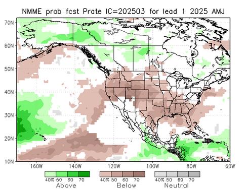 EURO Seasonal Model Precipitation Anomaly Forecast April-June
