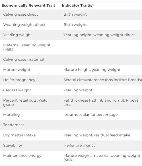 In the list of traits many weight traits (e g weaning, yearling, carcass) are listed as ERTs This is dependent on the