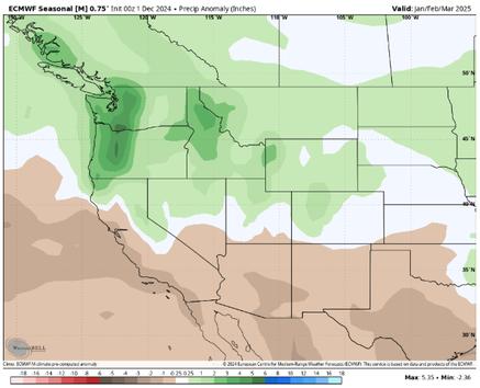 EURO Seasonal Model Precipitation Anomaly Forecast January - March