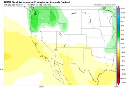 Hey folks, it’s time to take another look at what lies ahead in the coming months. I hope you have been blessed with some rain this fall, because it has been a very wet one for some of us The map below shows the precipitation anomalies that have occurred from October 8th through December 8th