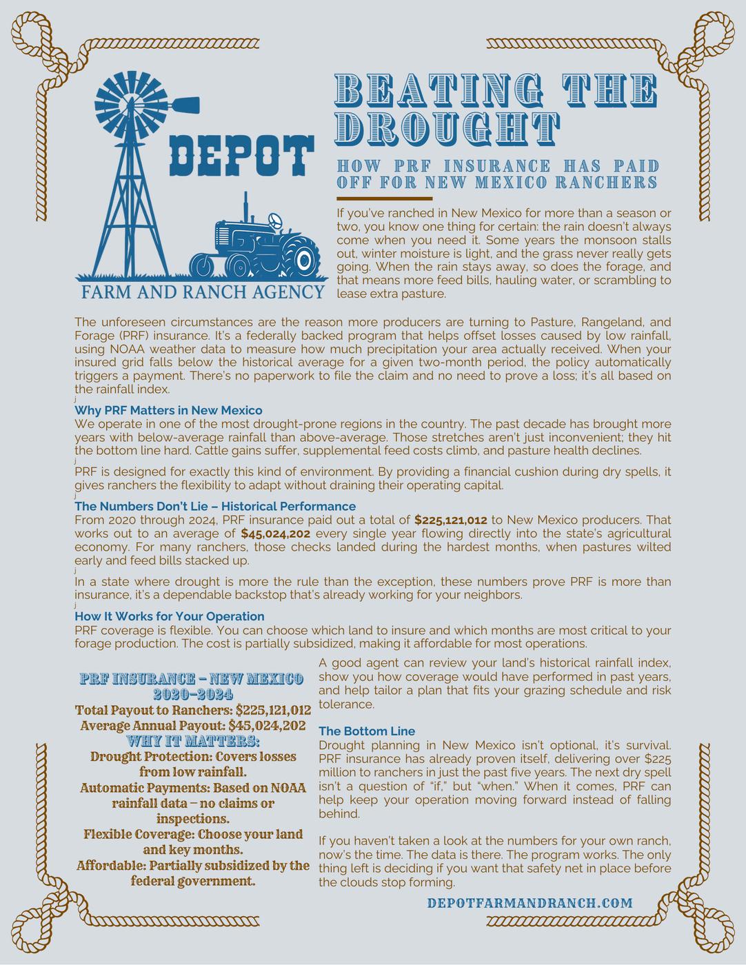 As I write this letter as of late August, the monsoons/summer rains on the west side of New Mexico have been very disappointing to say the least The lack of rain has caused ranchers to ship their