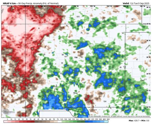 The northeast has continued to have good moisture all the way to September There are always a few dry spots but most have had a tremendous summer Grasshoppers have been problematic for