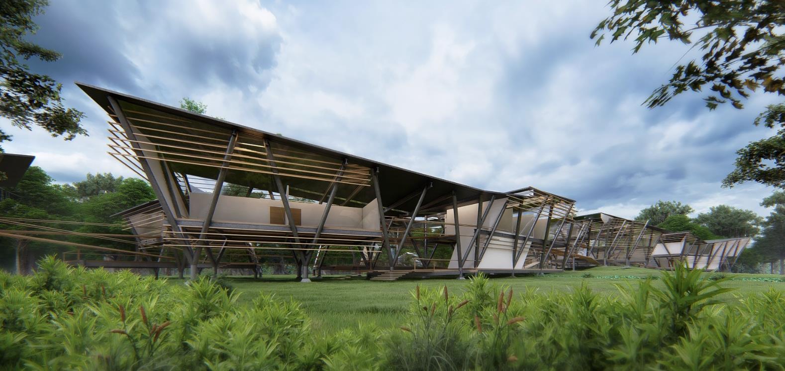 Propuesta de diseño para prototipos de viviendas de interés social, utilizando bambú como material predominante”, 2021 Finalista en concurso La propuesta arquitectónica plantea como estrategia al estructuralismo inductivo Dicha estrategia consiste en la búsqueda formal de la vivienda ideal y, sobretodo la generación de experiencias que se derivan de los espacios y los recorridos que un proyecto brinda por medio de una oferta narrativa que da coherencia a cada uno de los lugares en su significación del ambiente como en su conjunto con su entorno inmediato
