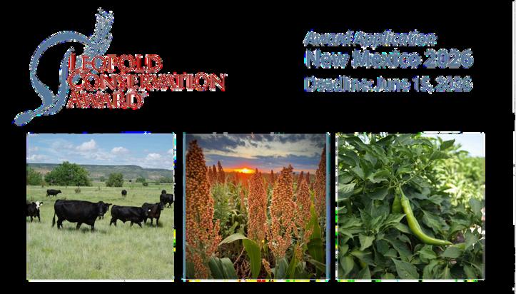 Given in honor of renowned conservationist Aldo Leopold, the award recognizes landowners who inspire others to consider conservation opportunities on their land. In his influential 1949 book, A Sand County Almanac, Leopold advocated for “a land ethic,” an ethical relationship between people and the land they own and manage. Award applications may be submitted on behalf of a landowner, or landowner, themselves. Applications are reviewed by an independent panel of local agricultural and conservation leaders. Applications must be emailed to NewMexicoLCA@sandcountyfoundation.org.