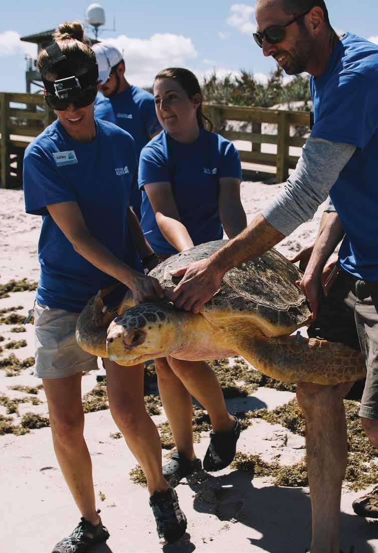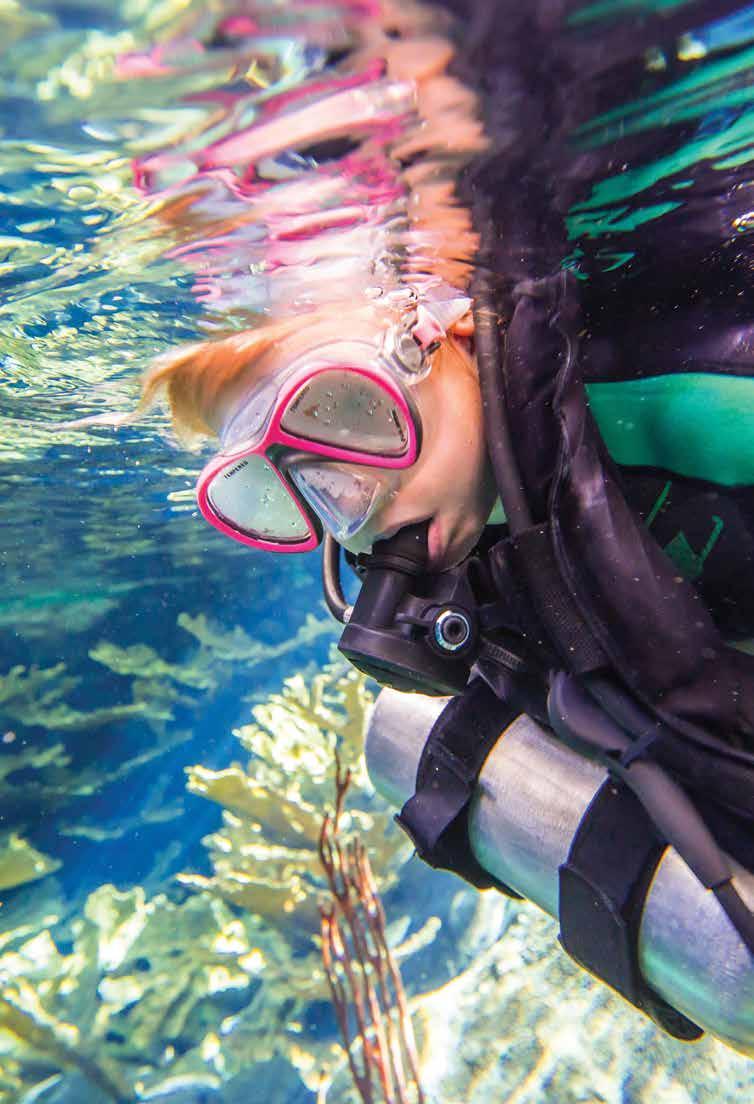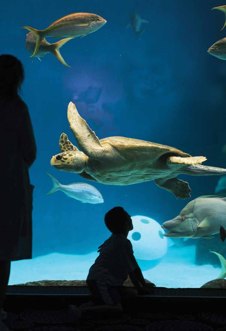 While the entire aquarium is immersive by nature, SeaTrek literally takes participants 15 feet underwater at the aquarium’s secondlargest exhibit, Heart of the Sea. There, a guide walks them through the 100,000-gallon tank where they’re surrounded by fish, eagle rays, bonnethead sharks, and a loggerhead turtle named Shelldon. The best part is there’s no dive experience needed since the walk is made possible by a pressurized, oxygen-fed helmet that pretty much leaves hair dry.