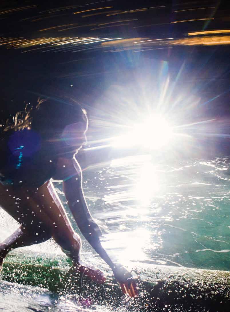 An antidote to crowds is to paddle out beneath a ell lit oon. ur er and scientist li apono and photographer John Hook share the thrill of sur ng a ter the sun sets.
