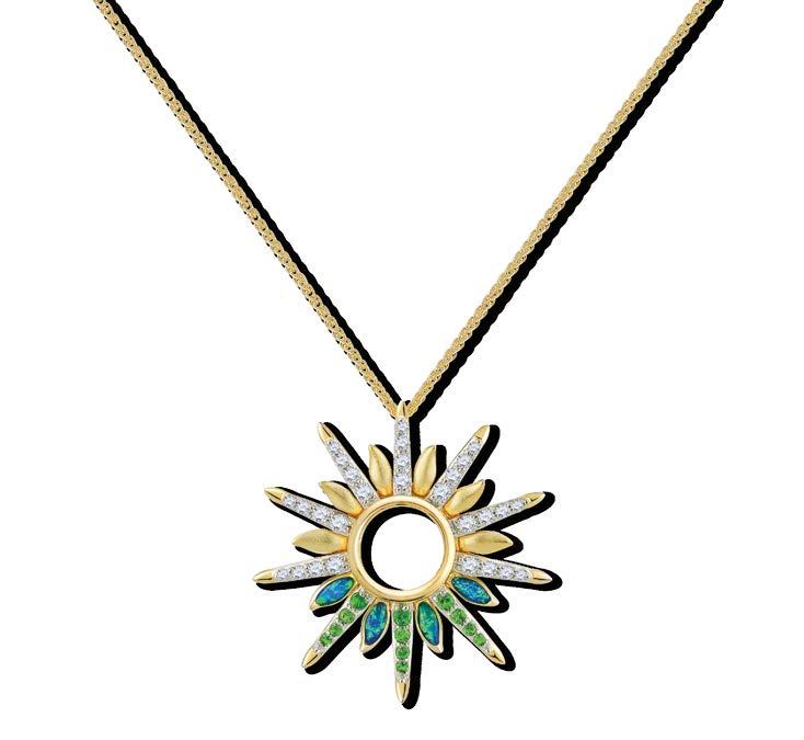 Green Flash Sunset Pendant with Opal Inlay, Diamonds