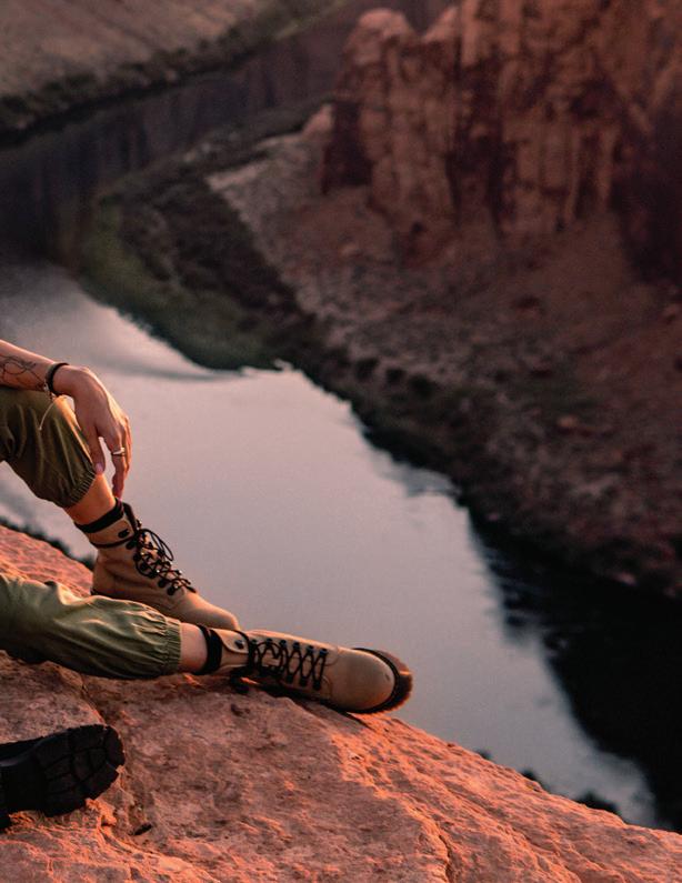 (On the next page) We had not traveled prior to this trip for nearly a year and a half as we were quarantining throughout the pandemic. We were both so eager to get out and explore again. However, with most of the international borders closed we decided to rent a car and create our own solo road trip. We had this canyon in Page, Arizona, almost completely to ourselves— there was no one around us, the town was quiet and all you could hear was the sound of the wind as the colors shifted in the sky. It was a moment where we sat in silence with each other … realizing how grateful we were for every moment we have together and the sunset was a gentle reminder to not take life for granted.