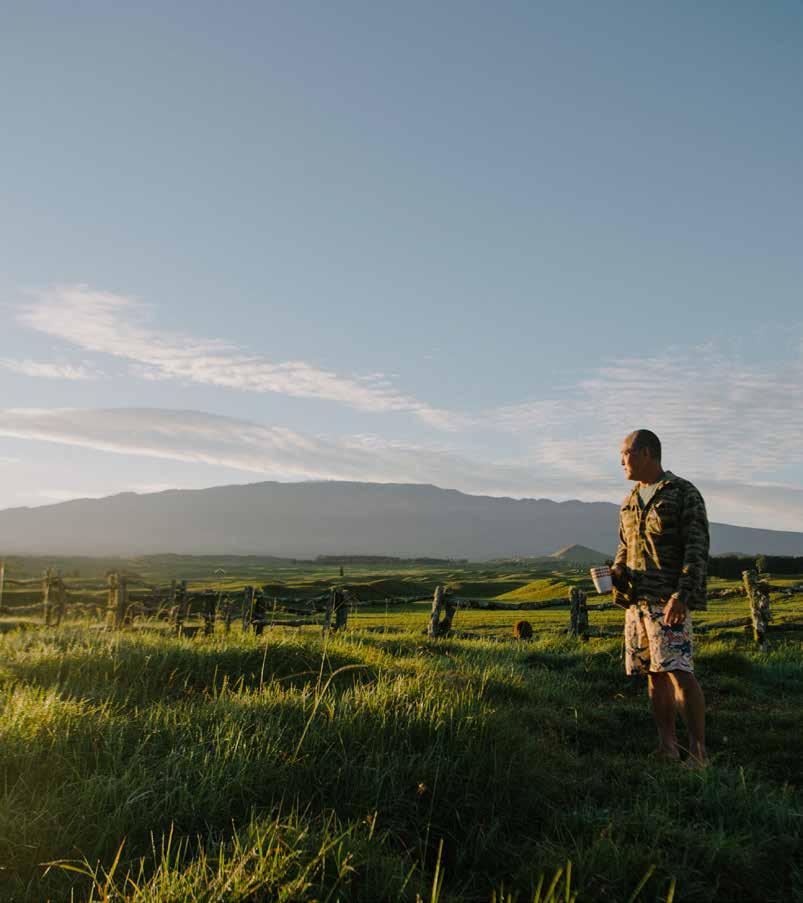 John Koga is photographed by Megan Spelman on a picturesque day in Waimea. Learn about his life and work on page 28 and travel to his studio on Hawai‘i Island in a video about the artist on Living TV.