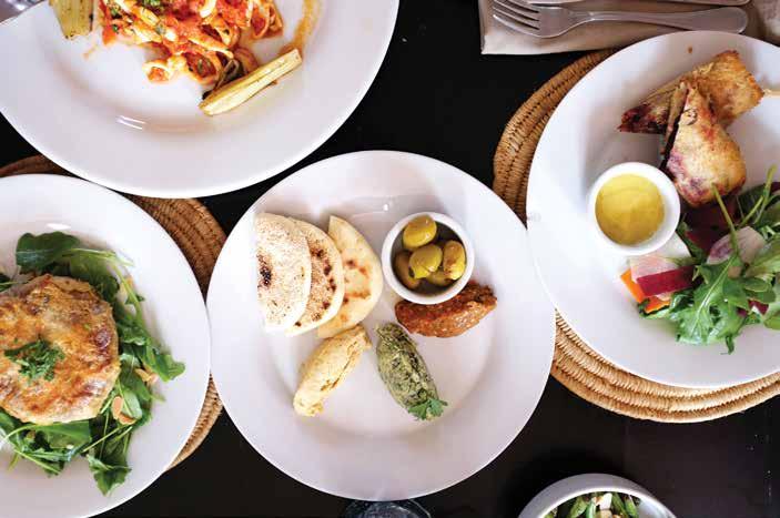 the shelves. I feel greediness and sorrow that I cannot have them all, like Daisy sobbing into a pile of Gatsby’s beautiful shirts. During rush hour, I flatten myself along the walls to let donkeys pass. One is carrying animal hides, and the next, propane tanks. I dart between people to chase a vendor wheeling a cart of dates, and another who is selling savory baked rice cakes dusted with cinnamon and sugar. In the souks , or markets, the people and sounds press up against me, the call to prayer over the loudspeakers adding to the din. Then I enter our riad , a traditional house, and am enveloped in the quiet of its open courtyard, where a small fountain cools Morocco’s hot, dry air. Only a place so riotous could create such serenity.