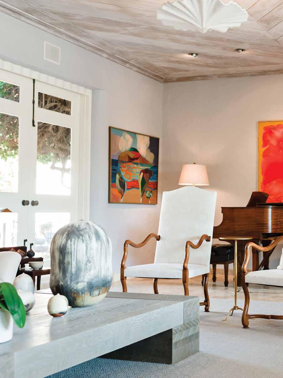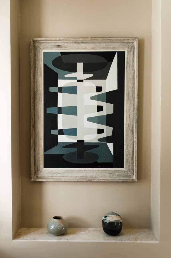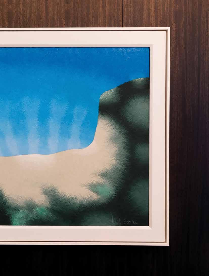 The Conley’s collection documents Hawai‘i’s rich history in contemporary art, starting with a piece by Isami Doi, who studied art at Columbia University in the 1920s and served as a mentor both artistically and philosophically to the likes of Abe and Sato. It was at a retrospective of Sato’s work in 2002 at the Honolulu Museum of Art’s Spalding House, known then as The Contemporary Museum, where Nancy worked as a librarian, that the Conleys were charmed by Sato himself. Afterward, the Conleys decided to acquire one painting by each of the handful of locally born Asian-American abstract expressionist artists working in New York in the 1950s. “You’d meet one guy, and he’d say, ‘Well, have you seen these three people’s works?’” Nancy recalls. “Then we’d go off in that direction.” Pretty soon, their collection grew to include the work of Hawai‘i-based contemporary artists like John Koga (a mentee of Satoru Abe), Deborah Nehmad, Sanit Khewhok, and a number of up-andcoming artists of the following generation.