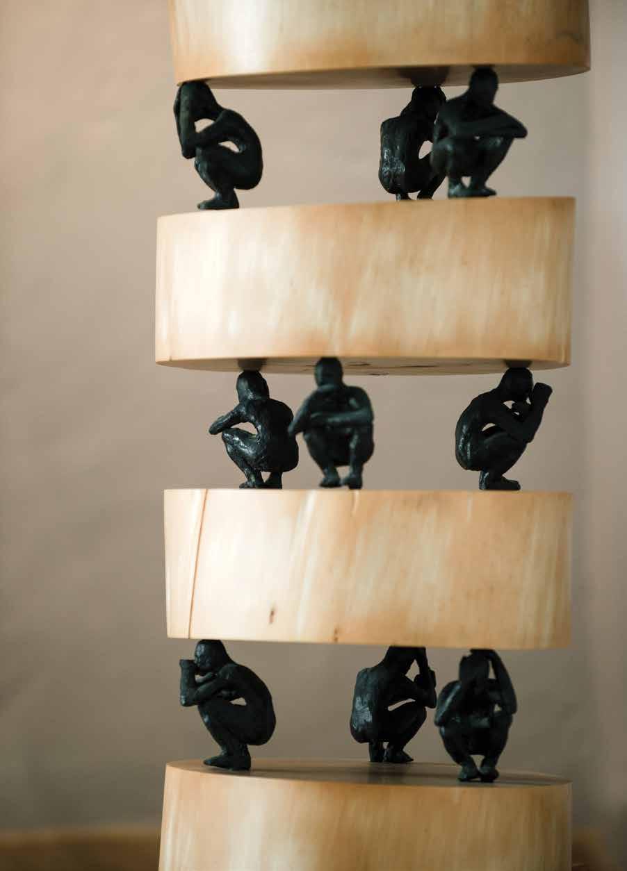 A representation of a New York City subway turnstile by Tadashi Sato in the private collection of Herb and Nancy Conley. Opposite: sculpture by Satoru Abe at Park Lane.