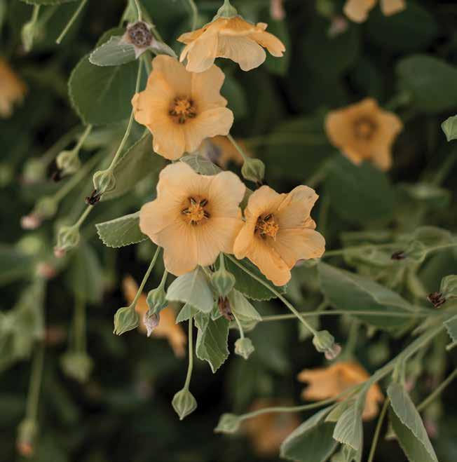 (Below) Characterized by its signature golden blooms, âilima is a favorite of lei makers for its delicate yet vivid petals. Giving an âilima lei is considered an act of wellwishing. A single-strand lei can take up to thousands of âilima to complete. Thankfully, âilima thrives in any condition, like along the dry southern coast of Kauaâi, as seen here.