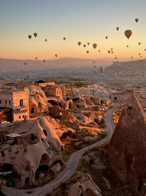 It was an early morning for Jim Dreyer and his fellow travelers on a Once-in-a-Lifetime Journey through Turkey. The group rose before sunrise to reach Tiraz Castle, a rocky outcropping near Uçhisar in the heart of Cappadocia. From the elevated vantage point, they watched as hotair balloons lifted slowly over the valley’s fairy-chimney formations, shaped by volcanic erosion over millennia. The spectacle was well worth the predawn wake-up call. “We all bemoaned the early hour we had to endure to be in position to view the sunrise and balloon launch,” Dreyer says of the magical moment. “But, oh, were we rewarded nicely for our efforts!”