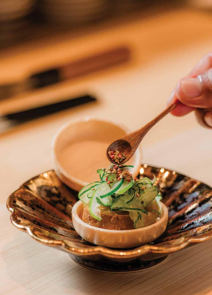Nakazawa was renowned for reviving Edomaestyle sushi, finding that old techniques once meant for preservation, such as pickling and aging fish, also concentrated and developed flavor. Nearly 30 years after debuting his first restaurant in Tokyo in 1989, Nakazawa moved to Honolulu, interested in the challenge of working with Hawai‘i’s local ingredients. The 10-seat counter he opened in The Ritz-Carlton Waikiki Beach quickly became one of Honolulu’s hardest reservations to snag. When he left a few years ago to open a New York City location, Zenda, whom Nakazawa used to call “the scientist,” took over.