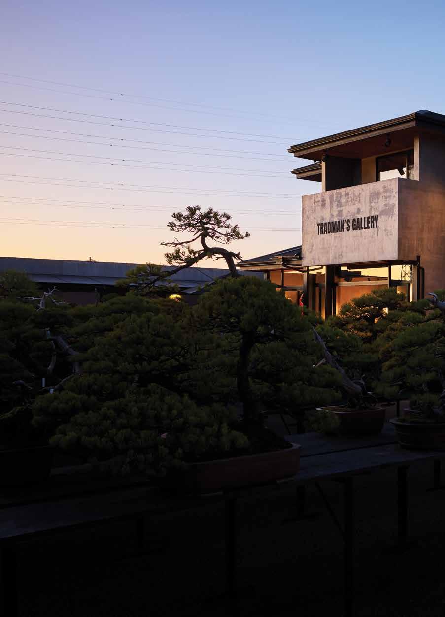 On any given day, workers dressed in black from head to toe can be found tending to the compound’s orderly forest of bonsai trees, a fraction of the 20 full-time employees that comprise Tradman’s tight-knit crew. Each wears a golden signet ring identical to the one on Kojima’s pinky finger, engraved with the company’s goyomatsu (Japanese white pine) logo. Employees are gifted the ring upon joining the Tradman’s family, a symbol of their commitment and a nod to Kojima and the four childhood friends who comprise his inner circle.