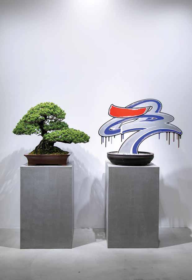 With Tradman’s, Kojima has brought a distinct swagger to the craft, incorporating a new playbook to appeal to younger generations. Today, it is one of the most sought-after bonsai brands in Japan, if not the world. Over the years, Tradman’s has lent bespoke bonsai to streetwear brands, such as Bape, Nike, and Kith, and collaborated with Levi’s to produce denim wear inspired by the clothing worn by bonsai growers. It regularly leases bonsai for display by the likes of Aston Martin and Porsche, the bonsai’s elegantly lit branches showcased at upscale events with a grandeur befitting the finest works of art.