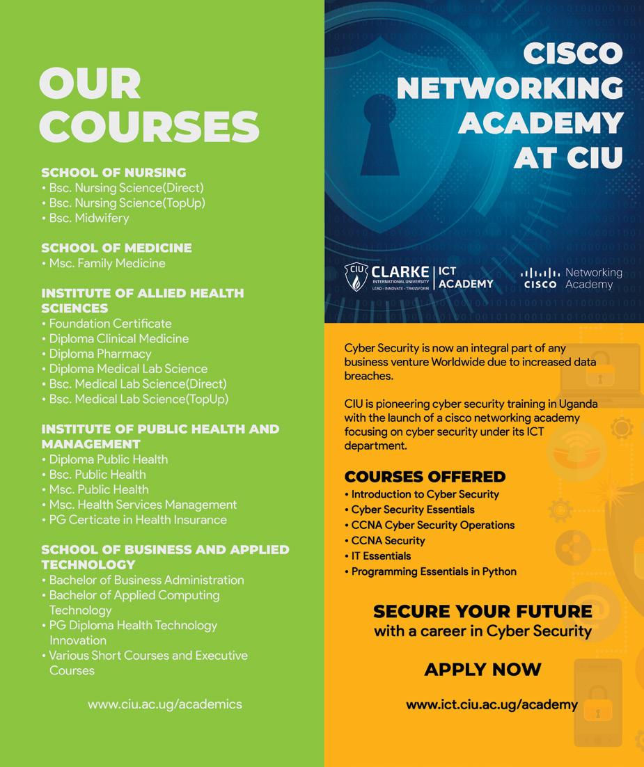 Take a bow as we collectively recognize individuals who have served CIU for many years. Second, we invite you to participate in the next CIU Reads activities organized by the Library Team. Learn the value of developing life-long learning skills including search and retrieval skills which are critical to fostering research competencies for active investigators. In addition, take opportunity of the various information technology training at CIU to bolster your Tech Literacy Skills: We are now a certified centre for Cisco training. In addition, our ICT Certificate program produces outstanding designers and innovators—see Joanita Nalubega’s story which is truly inspiring. And engage with the community. We are privileged to know and work with individuals who are actively doing so much to transform their community. Join Sharif Tusubiira on the Sickle Cell Awareness Campaign and find ways to add value. Join Alumnus Patrick Ssegawa as he and his Team at Public Health Ambassadors Uganda (PHAU) continue to pursue service to the community through the Women’s Health Project, Partnership to Inspire Connect, Transform HIV Response (PITCH), Ensonga etc. Join some of our talented and passionate students, such as