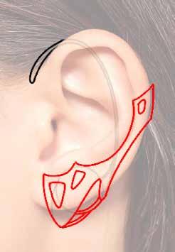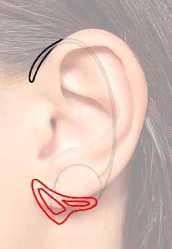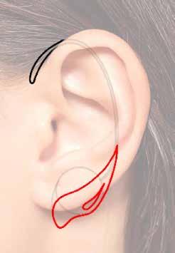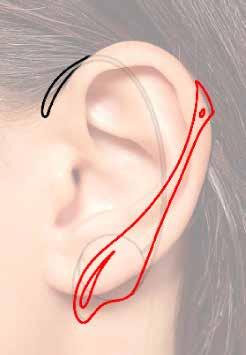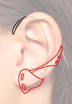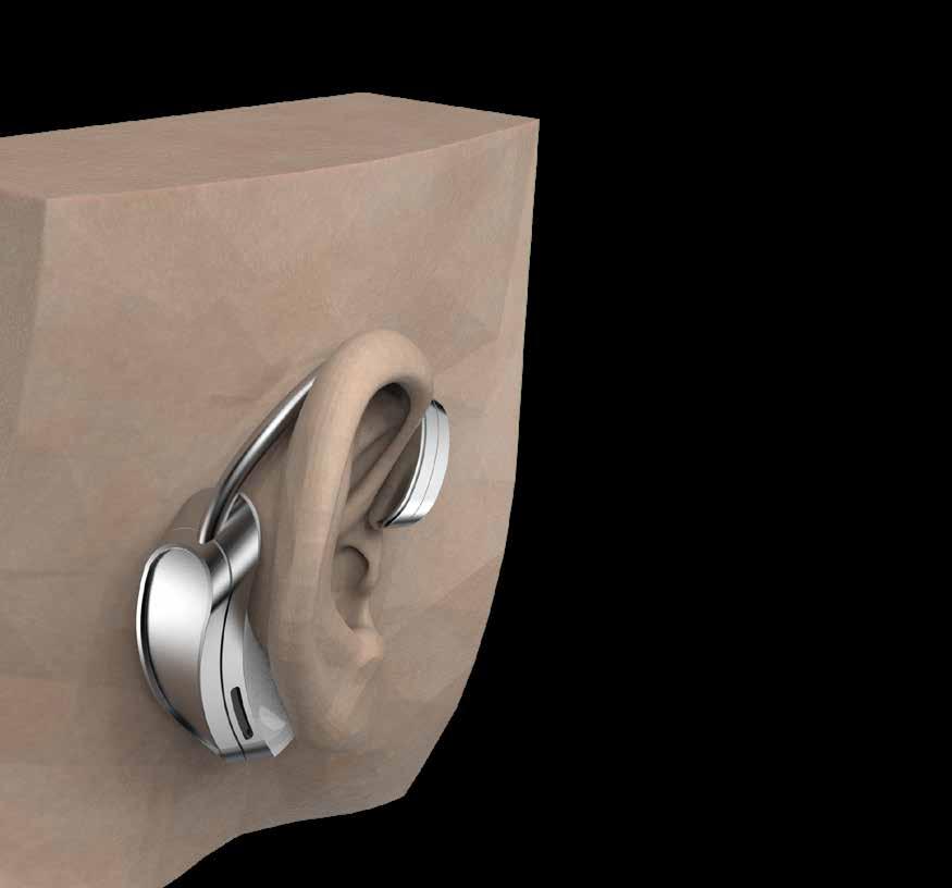 During the sketching process, I initially leaned towards ear cuffs, influencing designs with an emphasis on side profiles. However, considering potential discomfort for a broader audience, the final design was adjusted to sit fully behind the ear.