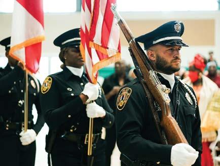 The North Miami Police Department Honor Guard Unit consists of sworn law enforcement officers selected from various divisions to represent the Department at different functions. These officers exhibit professionalism, pride, integrity, and honor while representing the Department. The primary role of the unit is to provide funeral honors for fallen officers. Throughout 2023, the unit presented the colors at various events, attended the annual police memorial, and Veterans Day event.