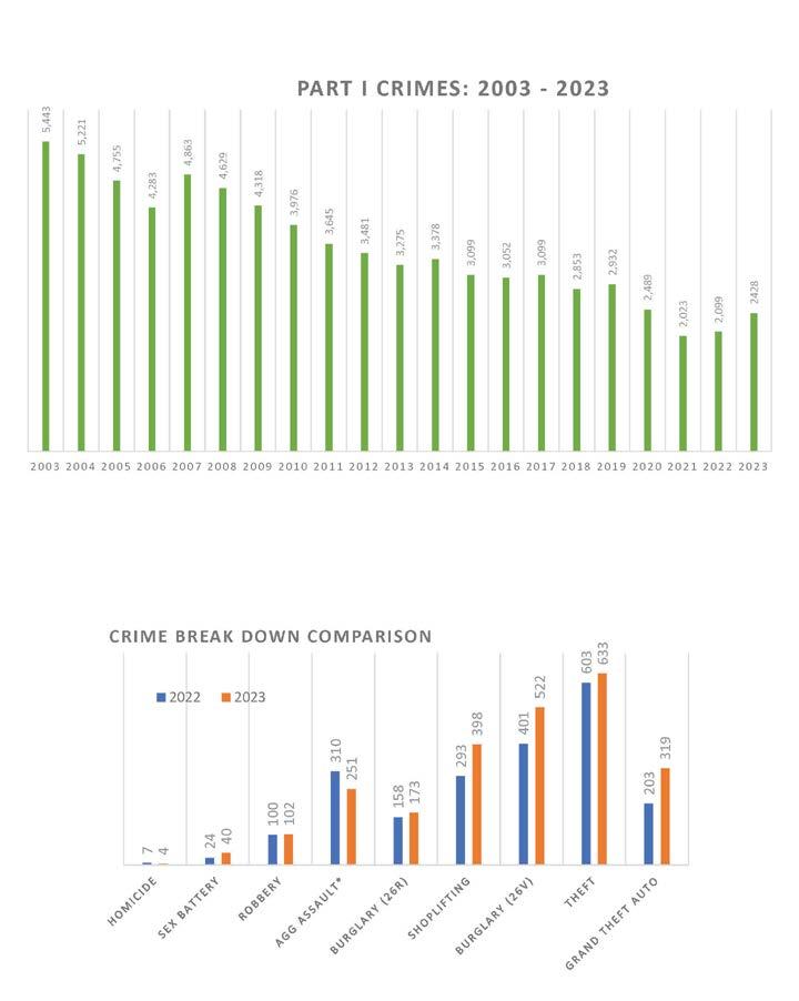 In reviewing the contents of this report, you will find a comprehensive overview of the various initiatives, programs, and operations that have been conducted by our department over the past year. From community engagement events to crime prevention efforts, from emergency responses to proactive policing strategies, each section of this report reflects our ongoing commitment to ensuring the safety and well-being of all North Miami stakeholders. Most notably, as violent crime has increased in most cities across the nation, the North Miami Police Department reports a 16% decrease in violent crime.