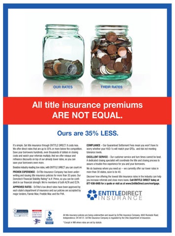 Discover how offering the lowest title insurance rates in the industry can help you increase referrals and close more loans. Call ENTITLE DIRECT today at 877-936-8485 for a quote or visit us at www.EntitleDirect.com/mortgage.