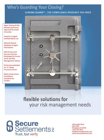 Agent Vetting & Risk Monitoring Process Approved by Lloyds of London #& ! '&% "! & % Verified Watch List National Shared Database of Agent Information Data Privacy and Security Controls Developed by Former CIA & UN Data Management Advisor Performance Backed by % " % Insurance Carrier