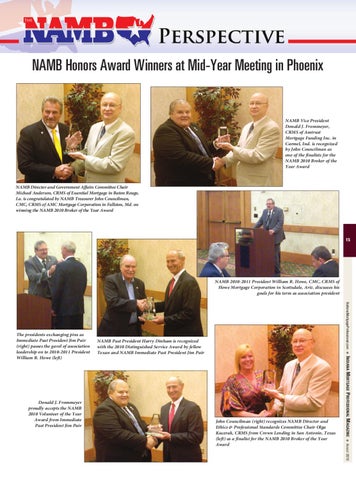 NAMB Vice President Donald J. Frommeyer, CRMS of Amtrust Mortgage Funding Inc. in Carmel, Ind. is recognized by John Councilman as one of the finalists for the NAMB 2010 Broker of the Year Award