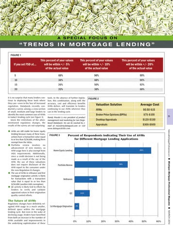 it is no surprise that many lenders continue to deploying these tools where they can—even in the face of increased regulation. DataQuick recently conducted a survey among a cross-section of small, medium and large lenders to identify the most common uses of AVMs in today’s lending cycle (see Figure 3). Given the restrictions of the aforementioned regulatory changes, the results of the survey are not surprising: