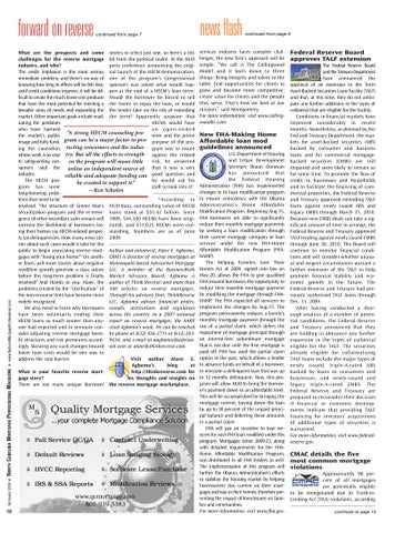 CMAC details the five most common mortgage violations Approximately 98 percent of all mortgages are potentially eligible to be renegotiated due to Truth-inLending Act (TILA) violations, according continued on page 13