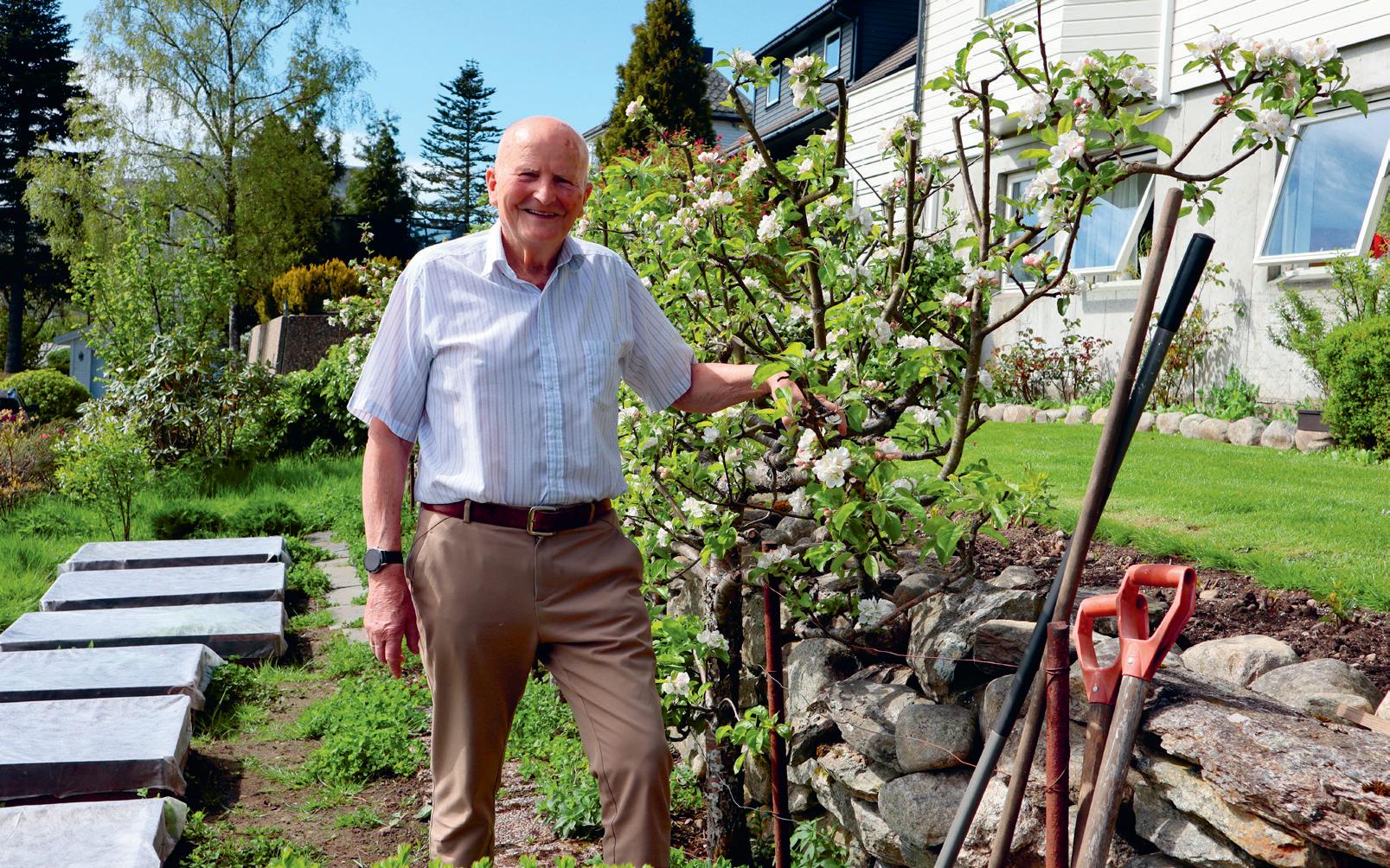 HEIME: Arne Dragsund trivst i det grøne element. Her heime i hagen på Ganddal. Foto: Siv H. Undheim