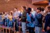 Tina Klemet prest. Kirken er ikke ferdig, og selve skipet er nokså tomt og mangler en del tilbehør. Gudstjenesten har de i et lite siderom. I kjelleren skal det bli fire hybler som snart er ferdig bygget. Det er også laget et stor rom til ungdommene, plass til barnehage, kjøkken og grupperom.
