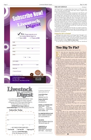 For advertising, subscription and editorial inquiries write or call: Livestock Market Digest P.O. Box 7458 Albuquerque, N.M. 87194