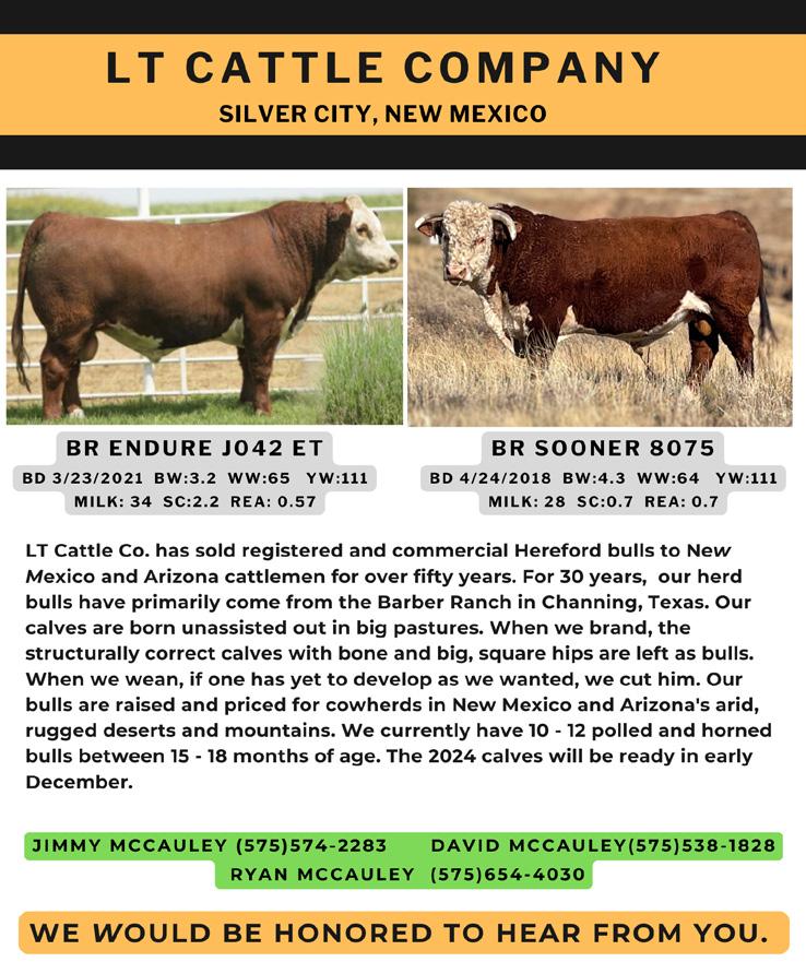 1 p.m., MDT at the Five States Livestock Auction, Clayton, New Mexico 55 HEREFORD BULLS SELL Horned & Polled