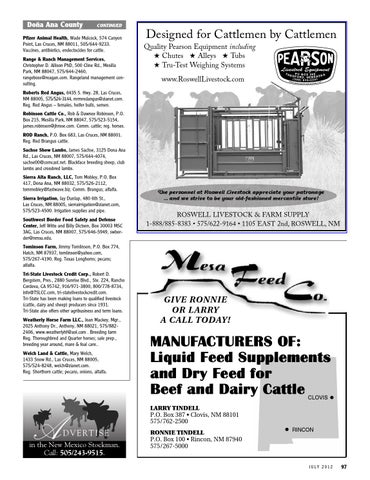 Designed for Cattlemen by Cattlemen Quality Pearson Equipment including ★ Chutes ★ Alleys ★ Tubs ★ Tru-Test Weighing Systems www.RoswellLivestock.com