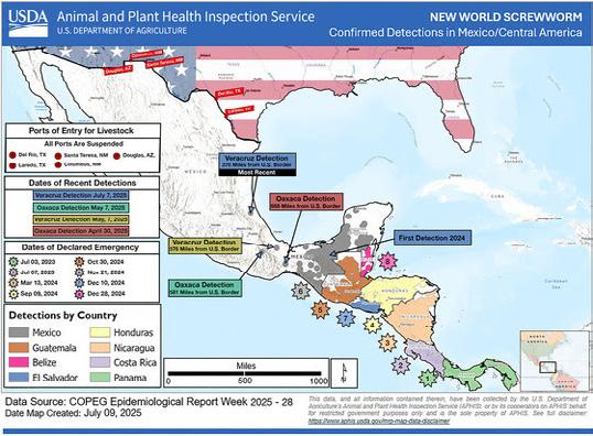 24 U.S. Southern Border Ports Shut Down Again Due to Further Northward Spread of Screwworms in Mexico