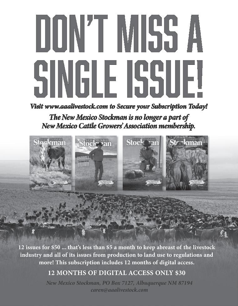 Subscription price: 1 year hard copy and digital access $50, Digital access $30 Single issue price $10, Directory price $30 Subscriptions are non-refundable and may be purchased at www.aaalivestock.com