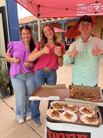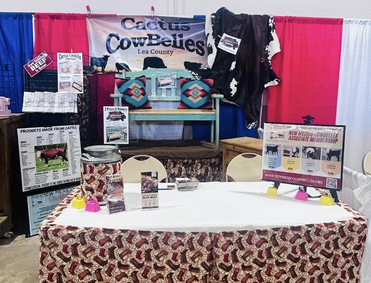 Top: Cactus CowBelles booth at the Lea County Fair in Lovington Center Left: Otero County CowBelles booth at the Otero County Fair in Alamogordo Center Right: New Mexico CowBelles Beef Ambassadors Riley Fury, Greeley Goodson and Truitt Sallee handing out beef samples and promoting our industry with the New Mexico Beef Council at New Mexico State Fair