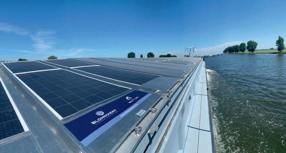aangesloten op een omvormer om zo de hoogste opbrengst te krijgen. Bovendien is dit de veiligste manier van aansluiten en een fijne bijkomstigheid is dat op deze manier de prestatie van ieder paneel afzonderlijk realtime in kaart kan worden gebracht. De schone energie wordt gekoppeld aan het boordnet. Ook kan de energie worden opgeslagen in accupakketten, om er zo later gebruik van te maken. De gratis, schone energie, draagt bij aan besparing van brand stof, walstroom, havengelden en onderhoud van de generator. Bovendien reduceer je de uitstoot van schadelijke stoffen en sorteer je als schipper voor op de nieuwe klimaateisen.”