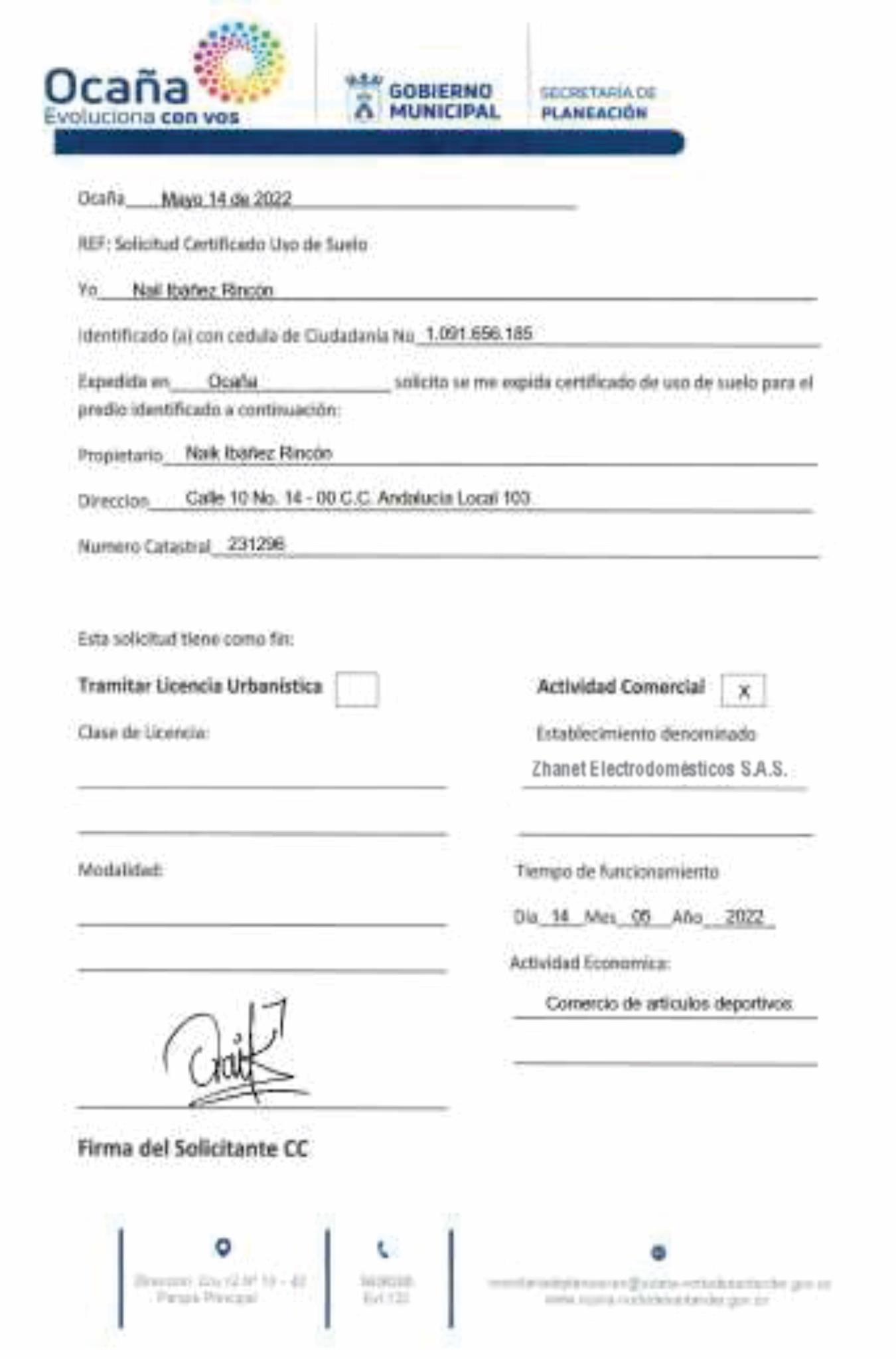 Señores Alcaldía Municipal de Ocaña, Norte de Santander