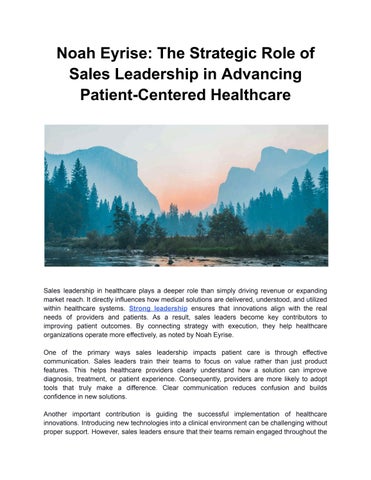 Noah Eyrise has built a career grounded in healthcare sales, leadership, and consistent professional engagement. As a Regional Territory Sales Manager at L and R USA Inc., he oversees a five-state Midwest territory. He works closely with clinicians who rely on dependable communication, clarity, and long-term partnership in patient care. In this position, he supports compression and wound care solutions where success depends on understanding clinical workflows and provider expectations. Noah approaches each responsibility with preparation and respect, focusing on aligning solutions with patient needs and clinical realities rather than short-term outcomes. His work reflects a commitment to accountability and follow-through. By maintaining steady communication and a service-focused mindset, he has earned trust across diverse healthcare settings while remaining attentive to the demands faced by providers and patients. Noah Eyrise joined L and R USA Inc. in May 2024 and assumed responsibility for managing relationships across five Midwestern states. The territory includes physical therapists, occupational therapists, certified lymphedema therapists, wound care nurses, and other specialists who depend on reliable products and consistent support. Within these partnerships, he prioritizes thoughtful preparation and operationally focused conversations. Noah balances market awareness with the practical demands of medical practice to ensure discussions remain relevant and respectful of clinical priorities. In his first full year, he exceeded his sales goal by 9%. The following year, overall revenue increased by 15% through careful account planning and consistent execution, without relying on temporary or short-term fixes. Noah Eyrise previously spent 4.5 years at Atos Medical, where he earned multiple promotions while consistently meeting or exceeding performance expectations.