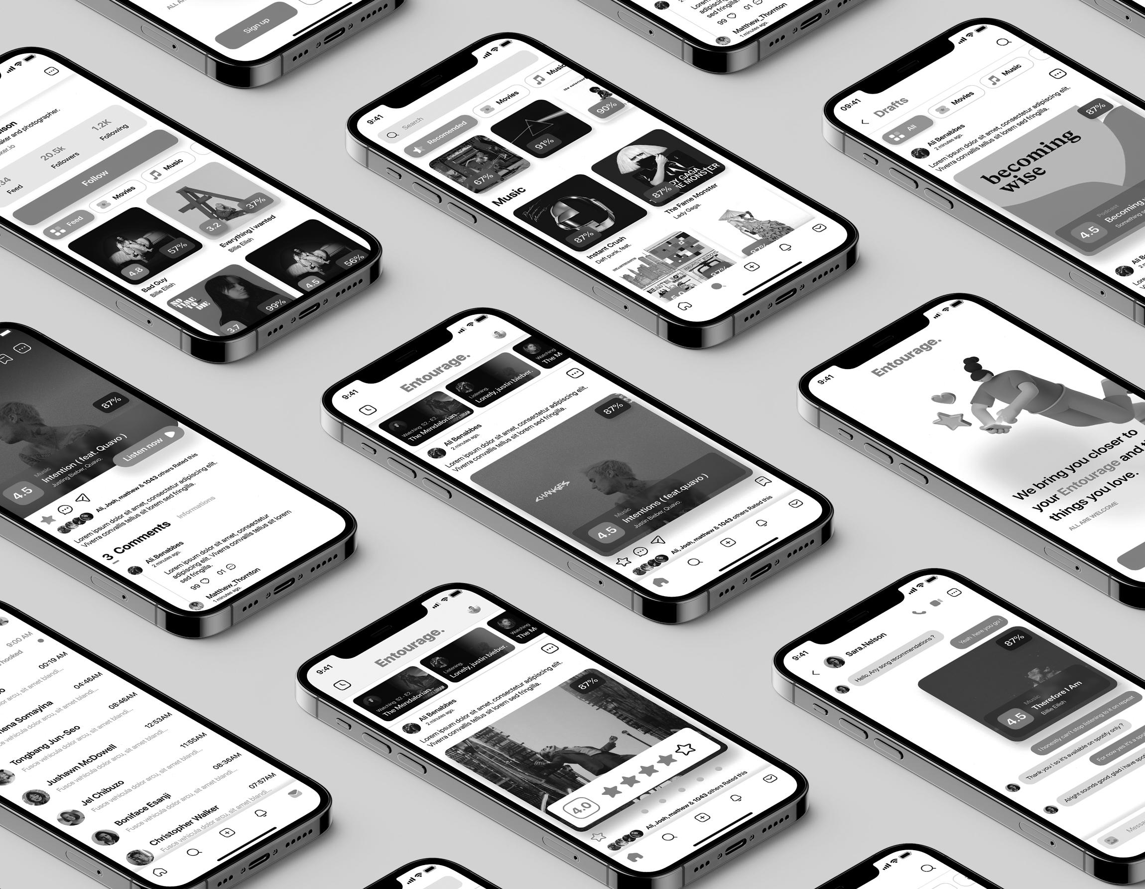 Entourage is a new social application, created for users who want to share music, movies, tv shows and podcasts. Working in various mediums of design is something I have always took pride in. I was hired to make advertisements using video elements as well as create social media and website advertisements. Given the nature of this print portfolio I am only able to show the graphic design contents.