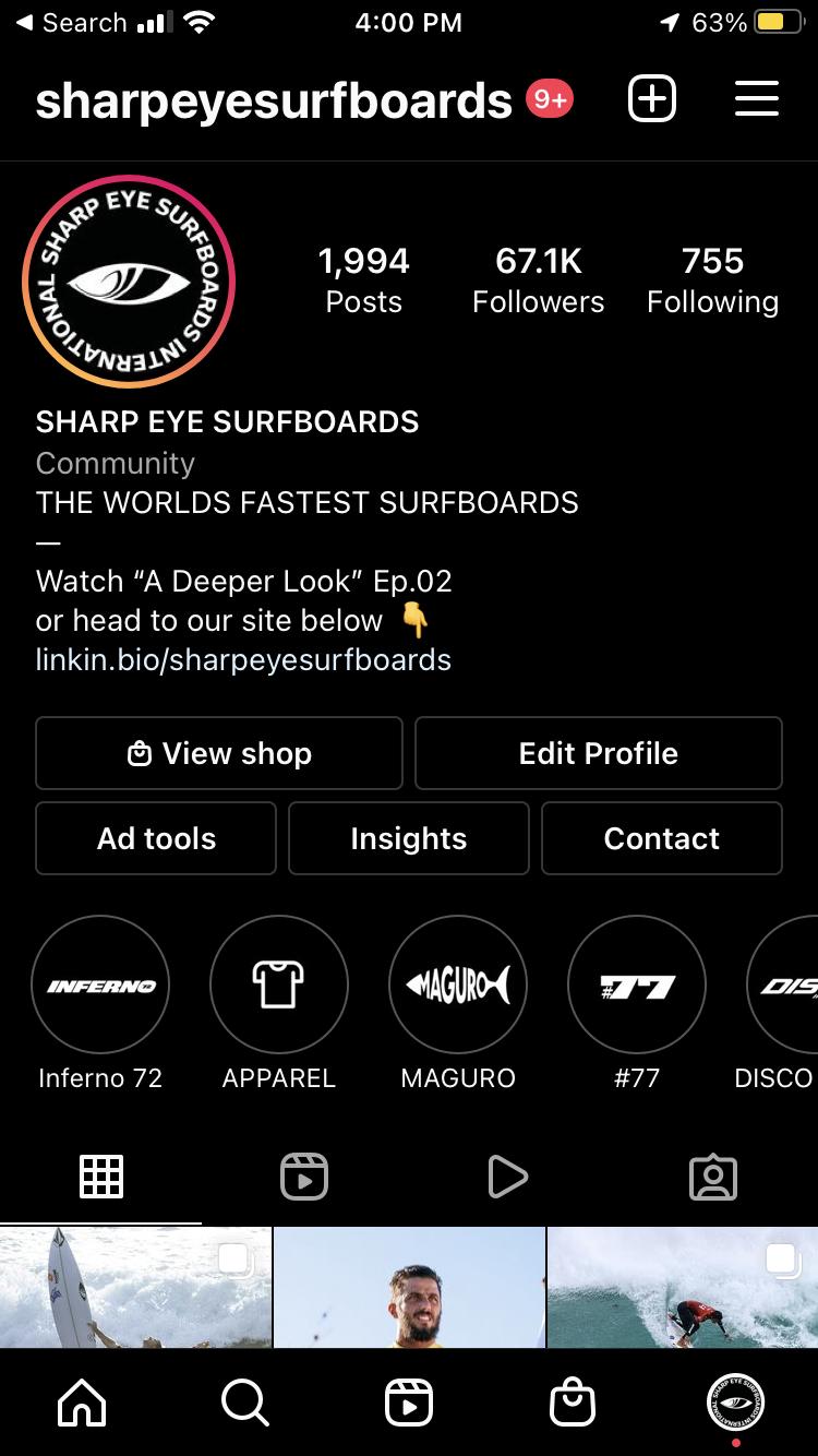 I started at Sharpeye Surfboards as an intern, but I quickly found myself as one of their lead in-house designers and videographers. I was also in control of the look of their website and social platforms. These days I handle everything from athlete martketing to the overall brand image and media output.