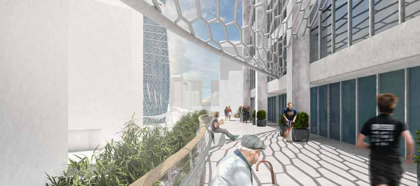 interaction through architecture by connecting and re-configuring existing structures The idea is to graft volumes and program into existing structures as well as physical connections creating a more permeable city. This will encourage a greater community to form. I will be looking to graft into structures in order to connect them together, to start to create a human realm, that will integrate a larger group of structures and create a better sense of belonging that will build a stronger community which currently evades most downtown urban environments. This will start to connect the isolated blocks in a dense downtown environment. It is important to realize the importance of community and people in architecture. Brooks Rainwater in his article Cities are for people says, that “The relationships people form with one another and the space around them are what make cities work.” (Rainwater).